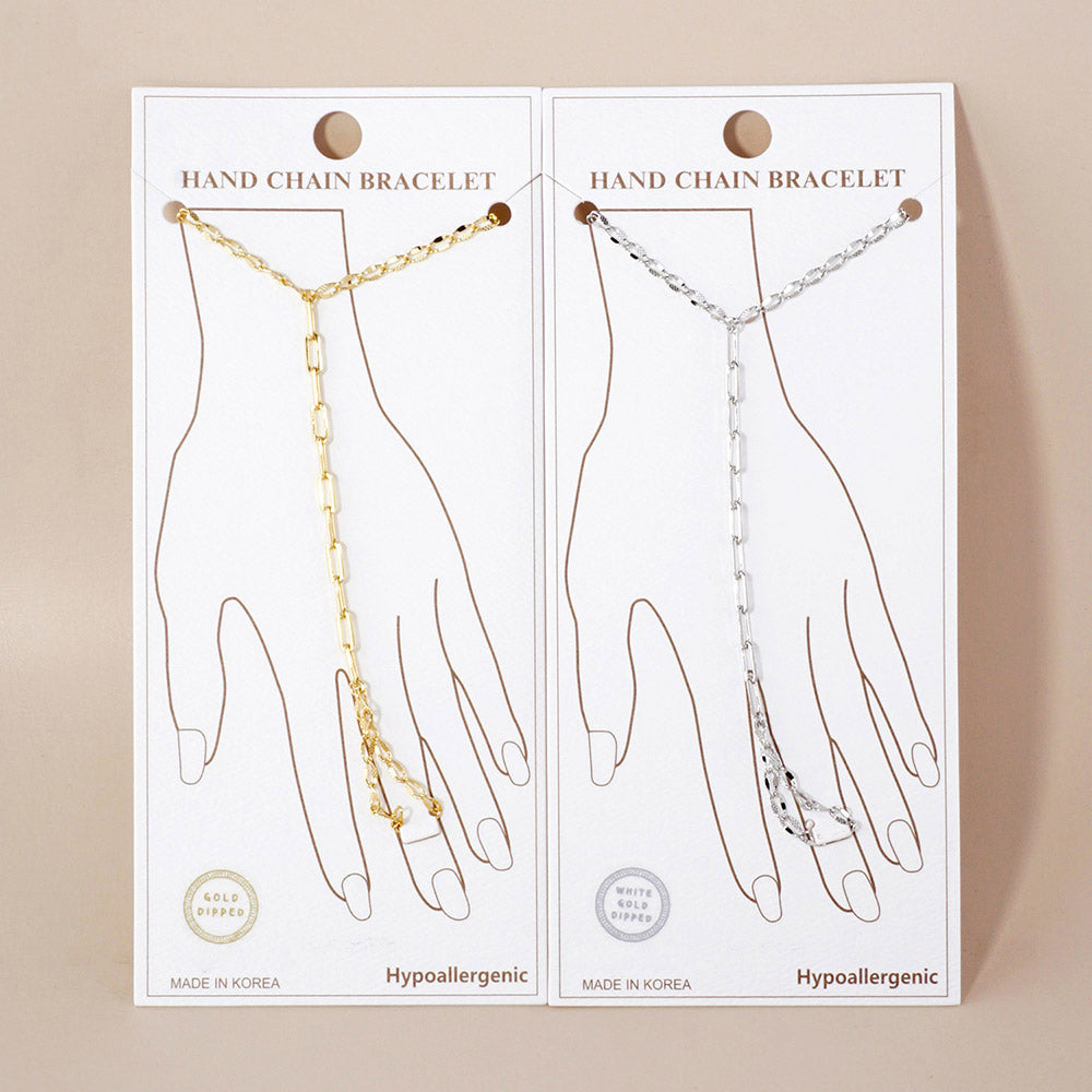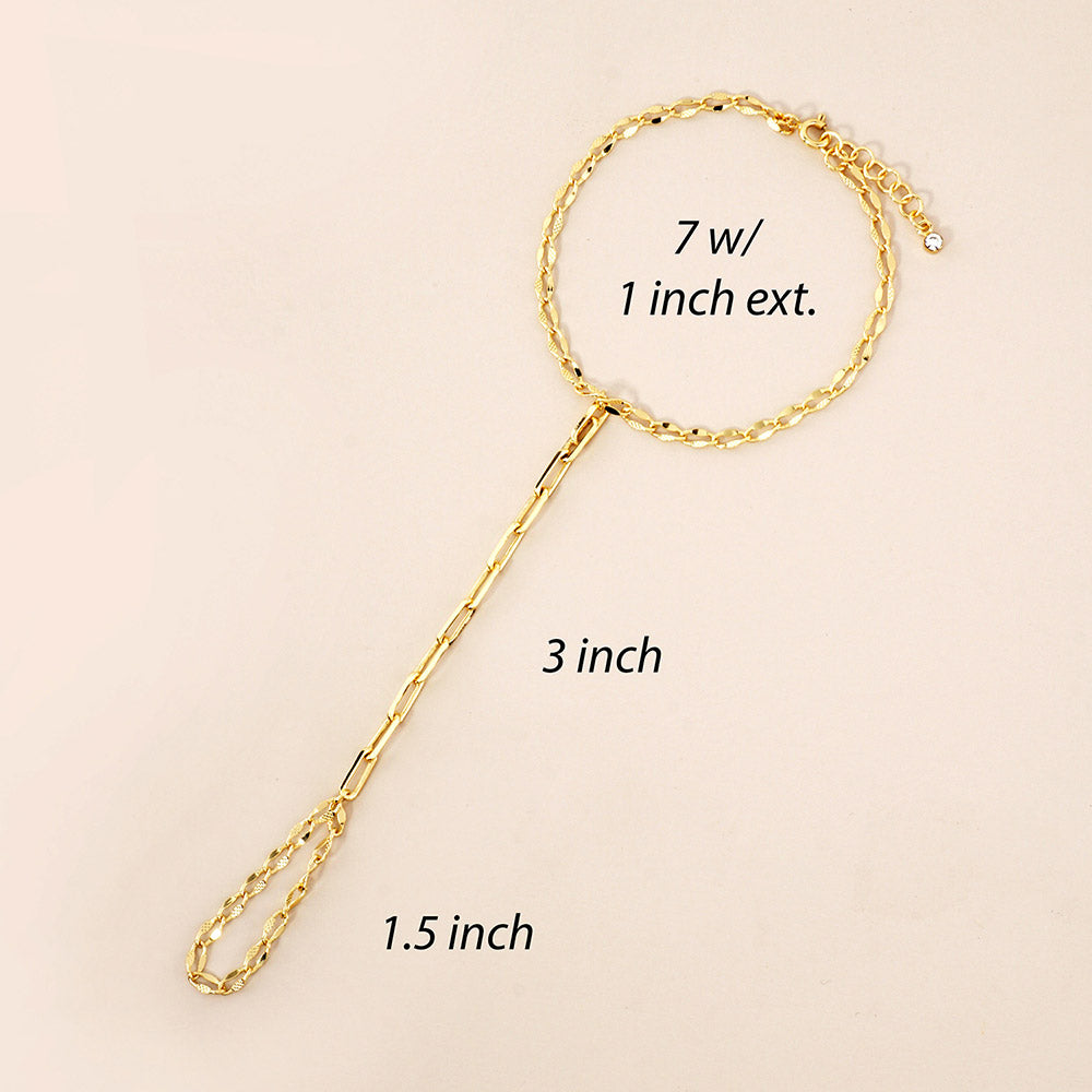 Minimalist hand chain bracelet with a chic, modern link design. Perfect for daily wear or layering with your favorite accessories.