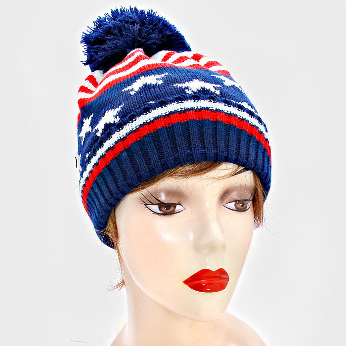 iLLASPARKZ American Flag Pom Beanie Hat