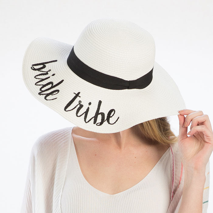iLLASPARKZ 'Bride Tribe' Embroidery Straw Floppy Sun Hat