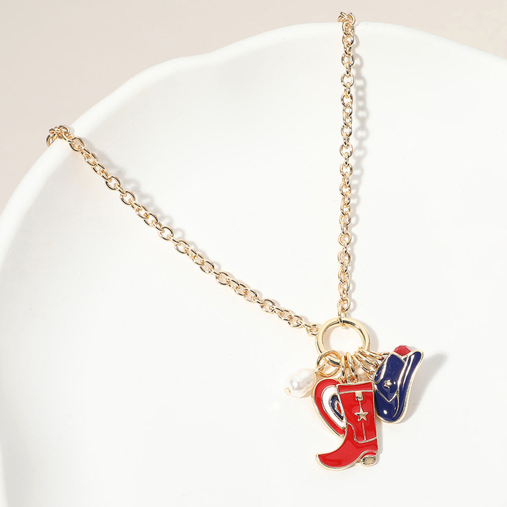 iLLASPARKZ Enamel American USA Flag Western Cowboy Boot Hat Heart Pearl Charm Pendant Necklace