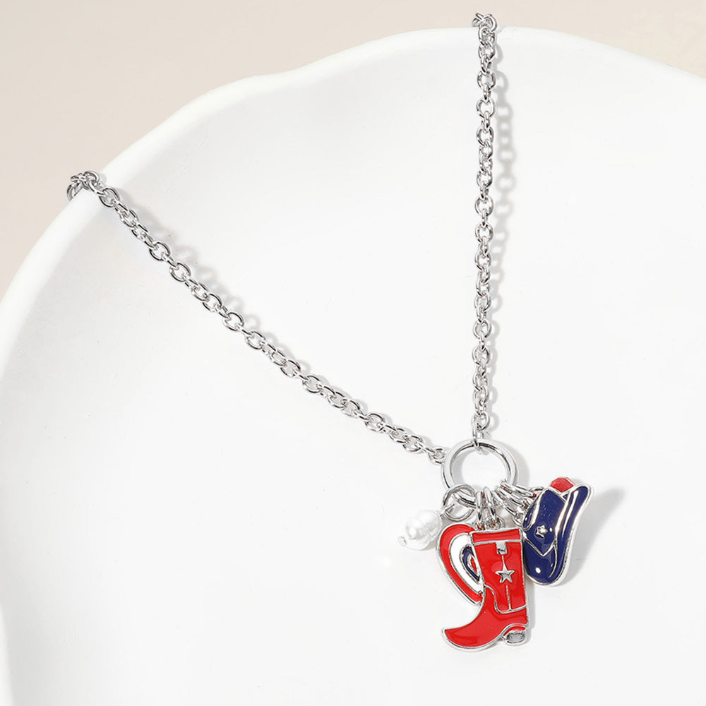 iLLASPARKZ Enamel American USA Flag Western Cowboy Boot Hat Heart Pearl Charm Pendant Necklace