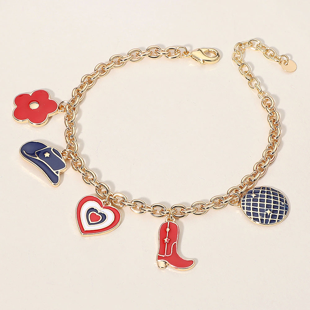iLLASPARKZ Enamel American USA Western Cowboy Boot Hat Heart Flower Charm Station Bracelet