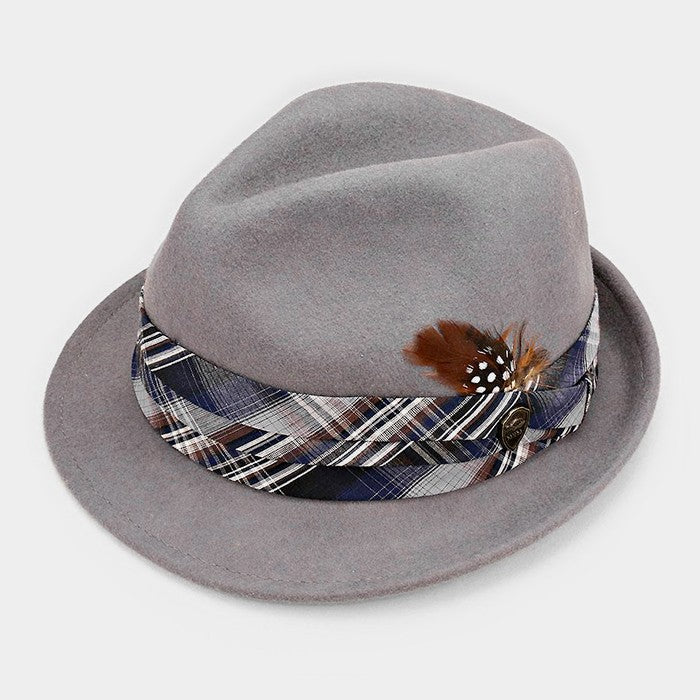 iLLASPARKZ Feather & Striped Ribbon Wool Fedora