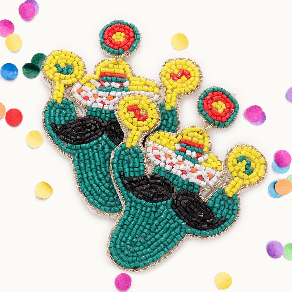 iLLASPARKZ Felt Back Beaded Hat Mustache Cactus Dangle Earrings