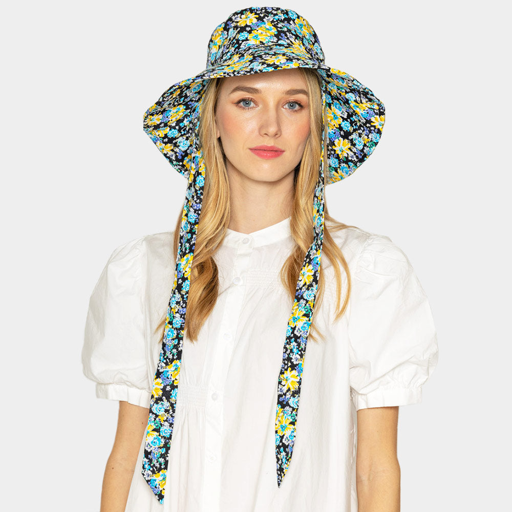 iLLASPARKZ Flower Patterned Chin Tie Bucket Hat