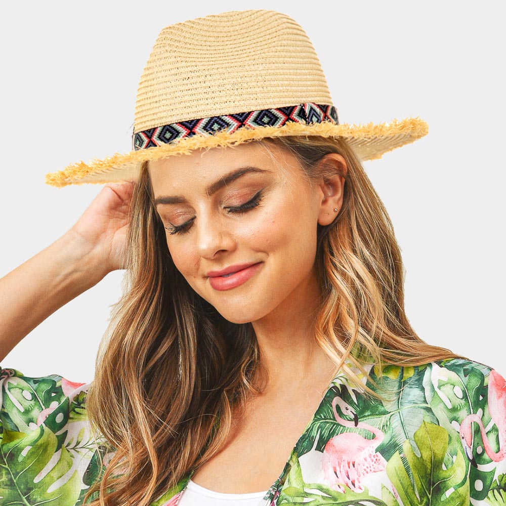 iLLASPARKZ Frayed Trim Aztec Straw Hat