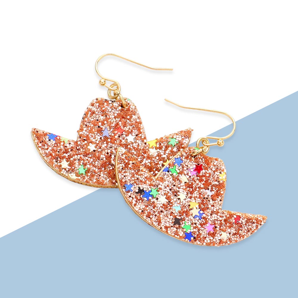 iLLASPARKZ Glittered Cowboy Hat Dangle Earrings