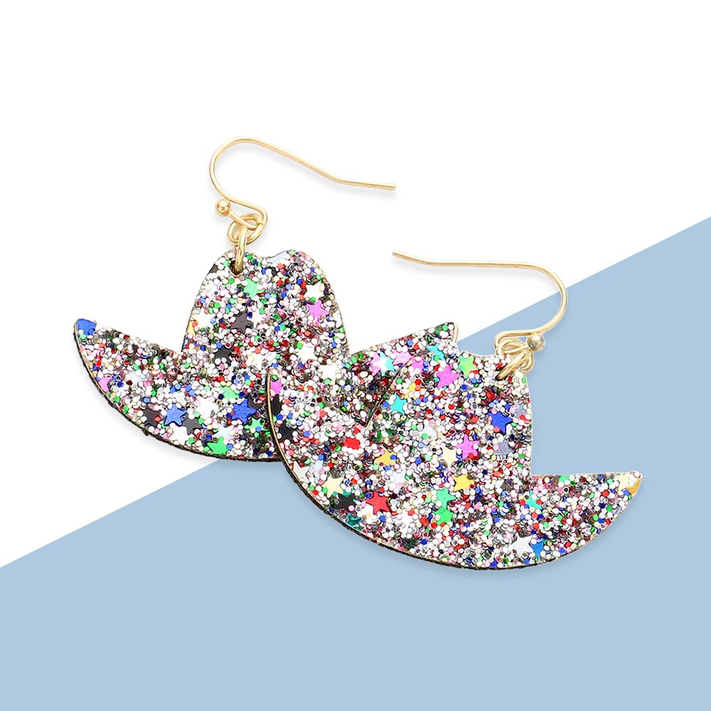 iLLASPARKZ Glittered Cowboy Hat Dangle Earrings