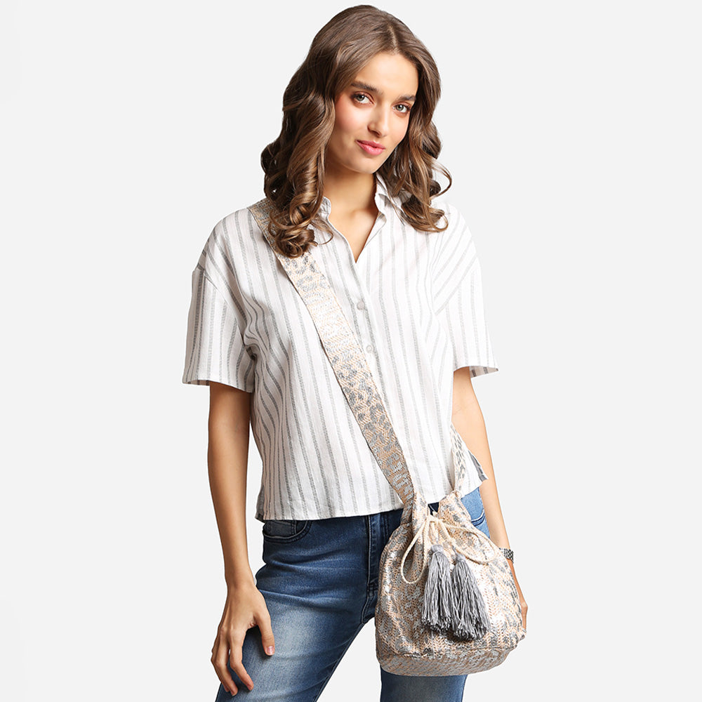 iLLASPARKZ Leopard Straw Tassel Crossbody Bucket Bag