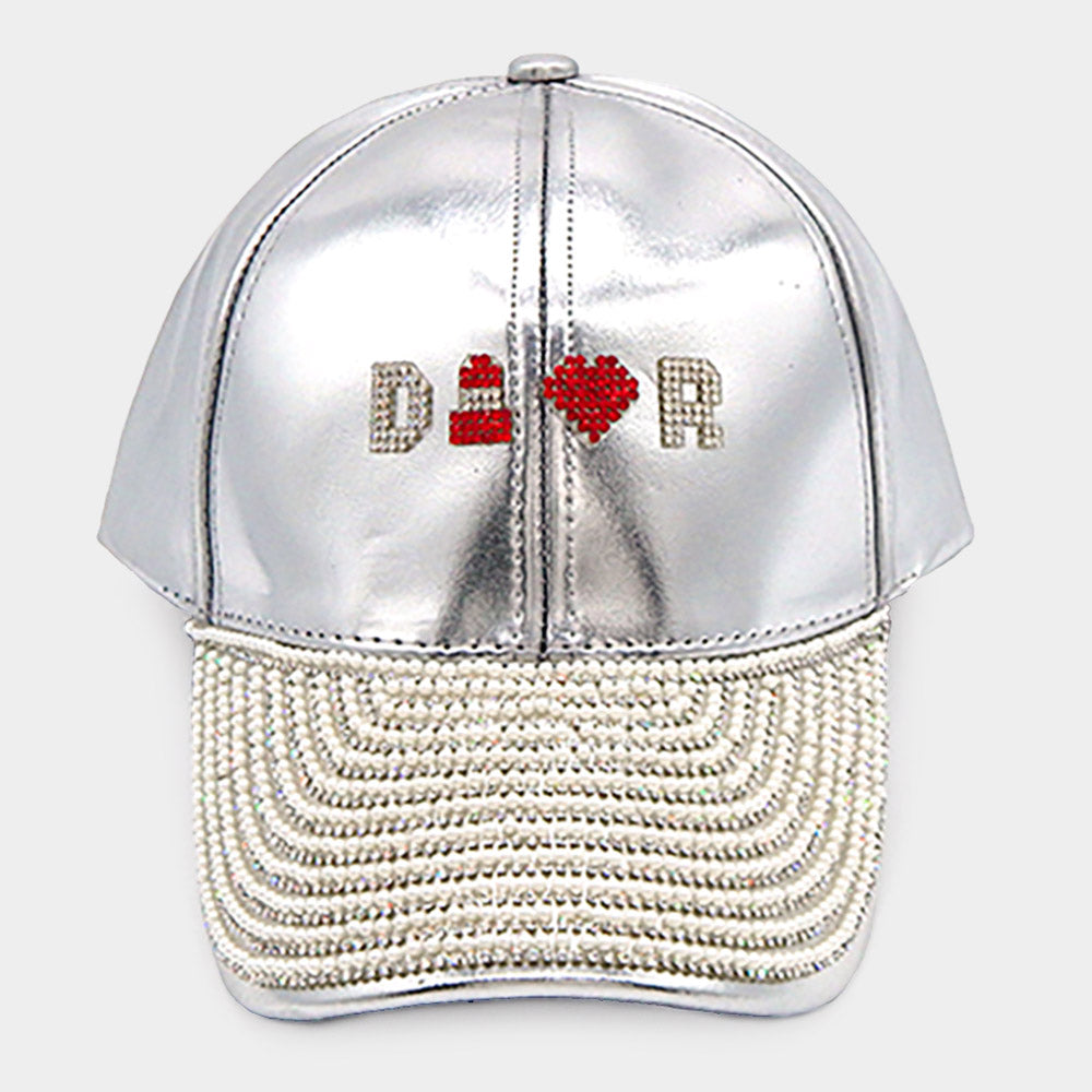 iLLASPARKZ Lipstick Heart Accented Pearl Embellished Baseball Cap