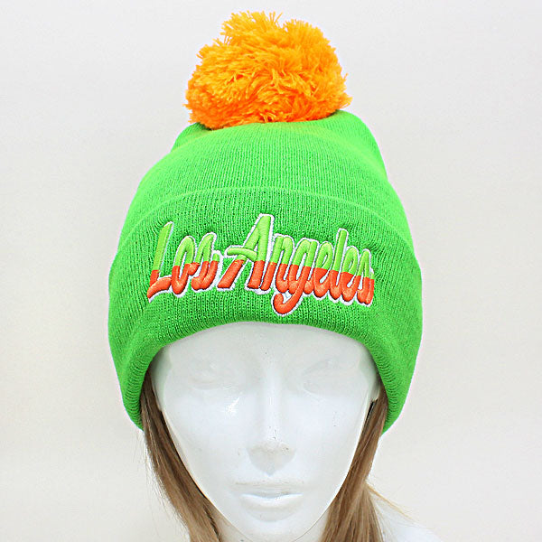 • "Los Angeles" Embroidered Acrylic Pom Beanie