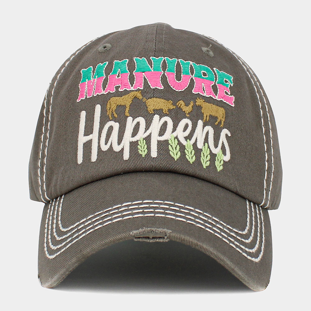 iLLASPARKZ Manure Happens Message Animals Pointed Vintage Baseball Cap