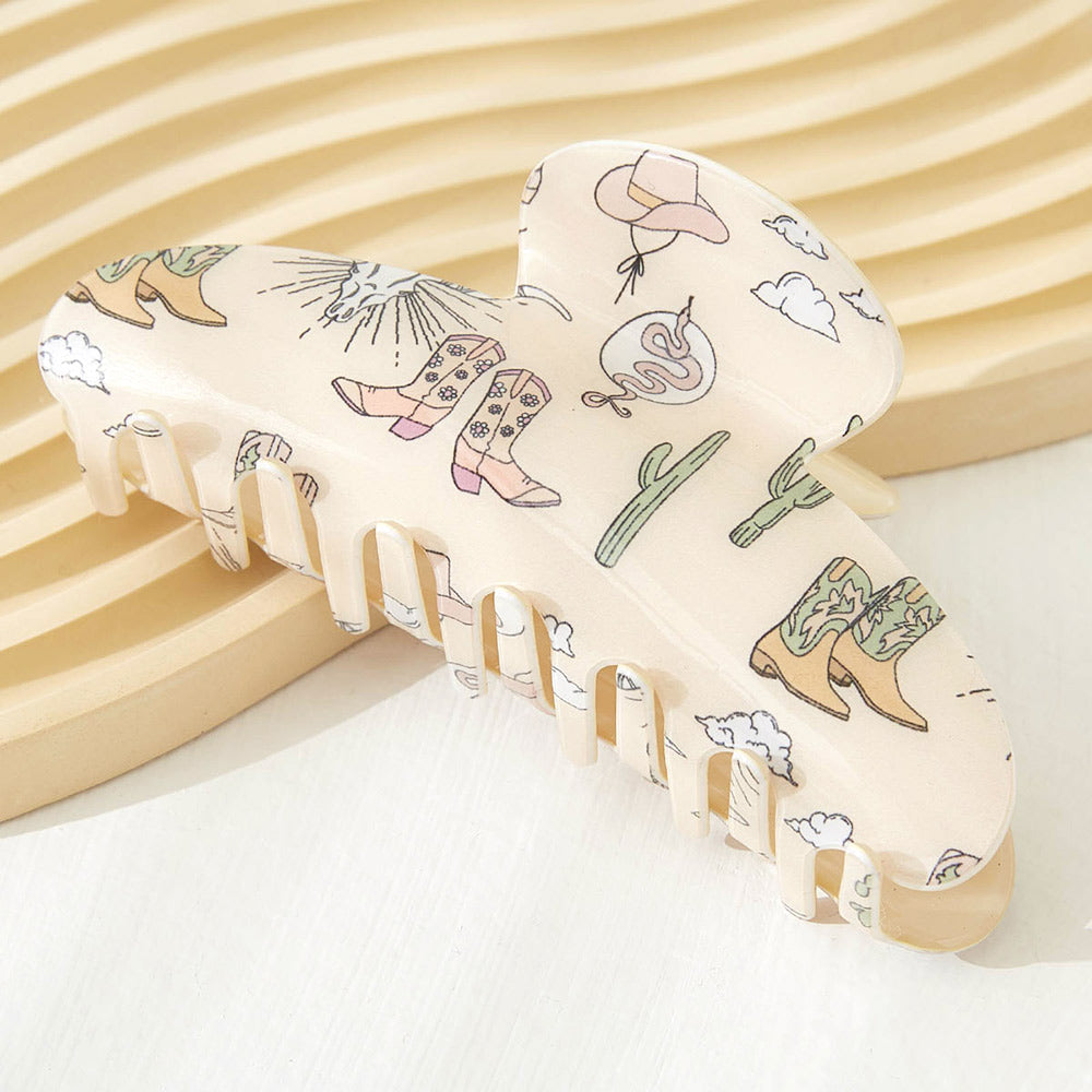 iLLASPARKZ Western Boots Cowboy Hat Cactus Snake Patterned Hair Claw Clip