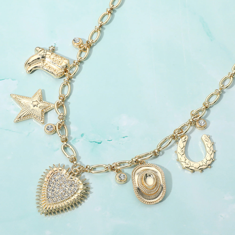 iLLASPARKZ Western Heart Cowboy Boot Hat Star Horseshoe Charm Station Necklace