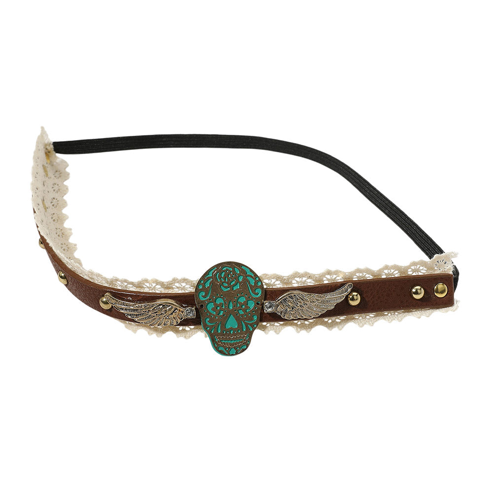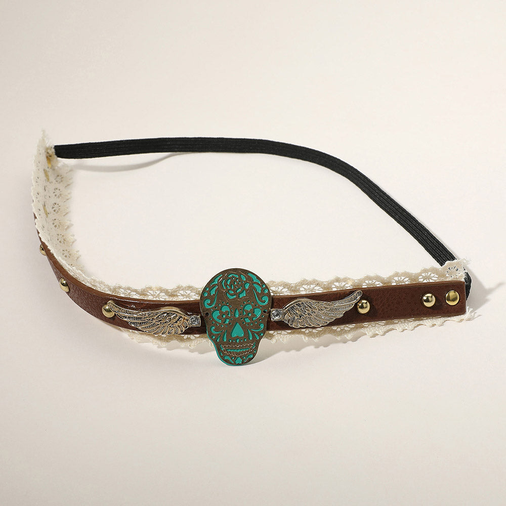 iLLASPARKZ Day of the Dead Mexican Sugar Skull & Wings Faux Leather Lace Stretch Headband