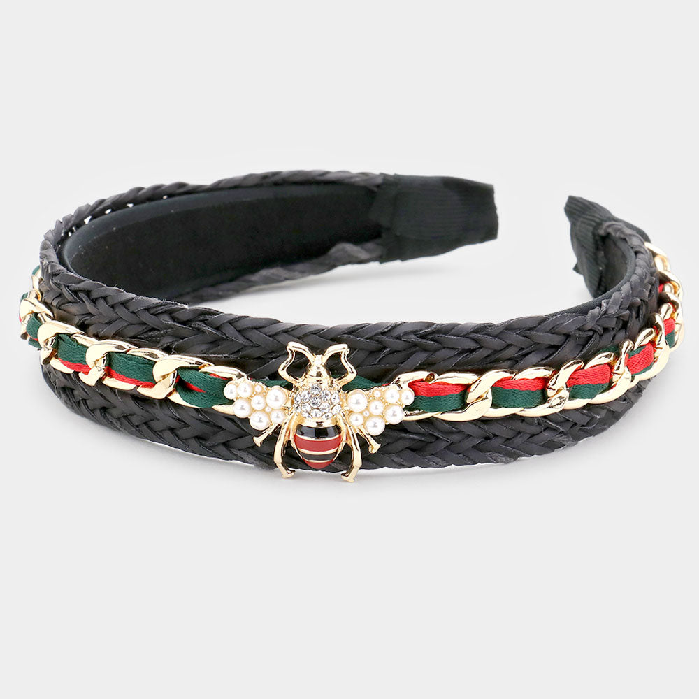 iLLASPARKZ Honey Bee Accented Metal Chain Color Block Detail Braided Faux Leather Headband