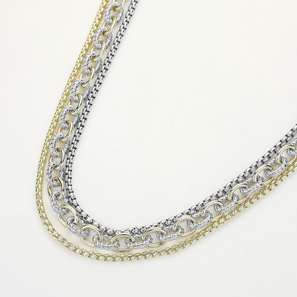 iLLASPARKZ 14K Gold Plated Two Tone Multi Layered Chunky Chain Necklace