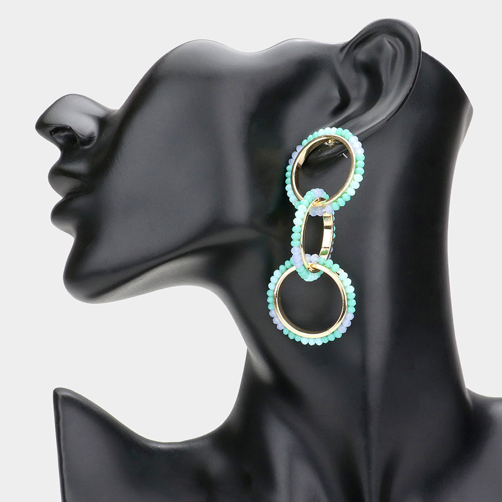 iLLASPARKZ Faceted Bead Trimmed Triple Open Circle Link Dangle Earrings