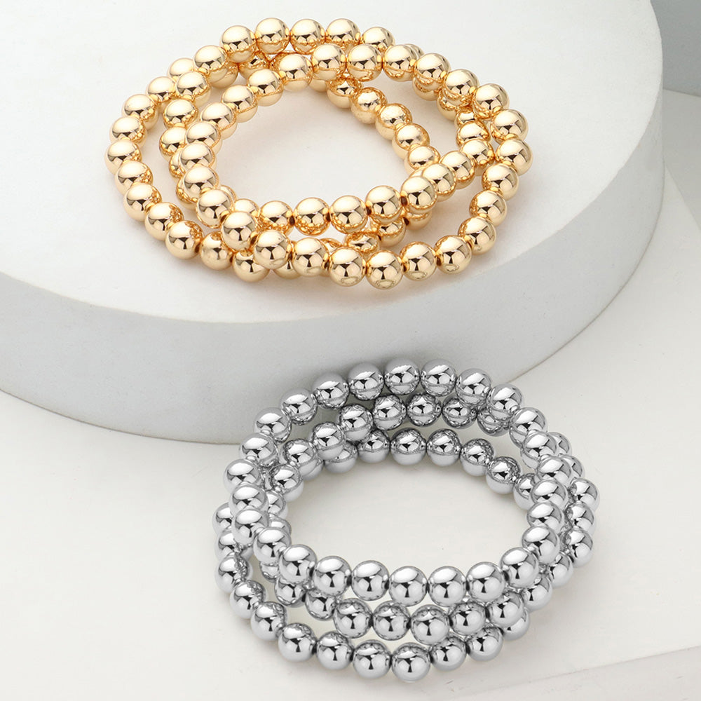iLLASPARKZ 3PCS - Metal Ball Beaded Stretch Multi Layered Bracelets