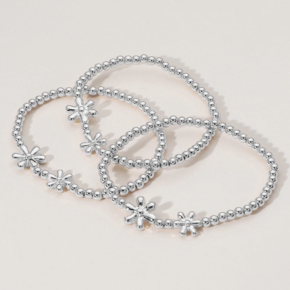 iLLASPARKZ 3PCS - Metal Flower Ball Beaded Stretch Multi Layered Bracelets