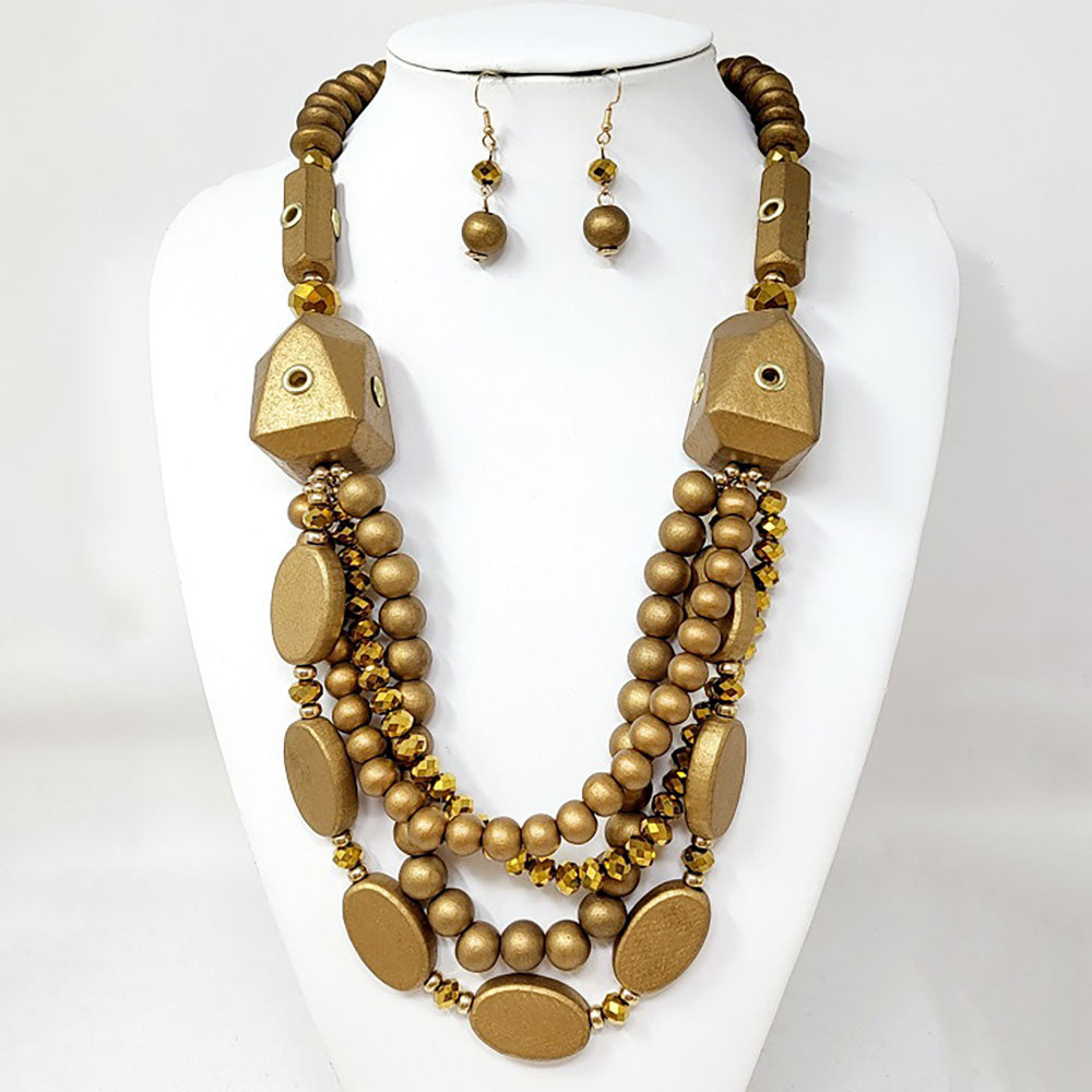 iLLASPARKZ Bold Multi Layered Wood Beaded Statement Necklace