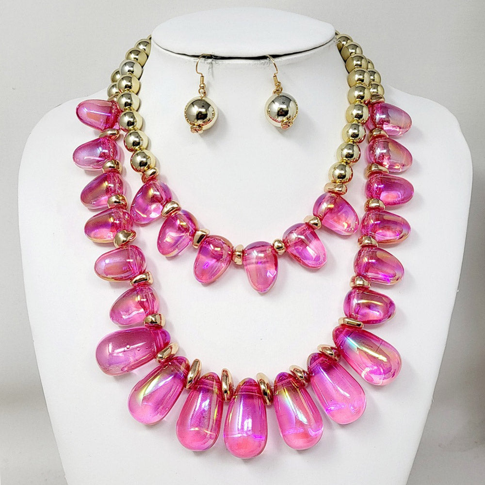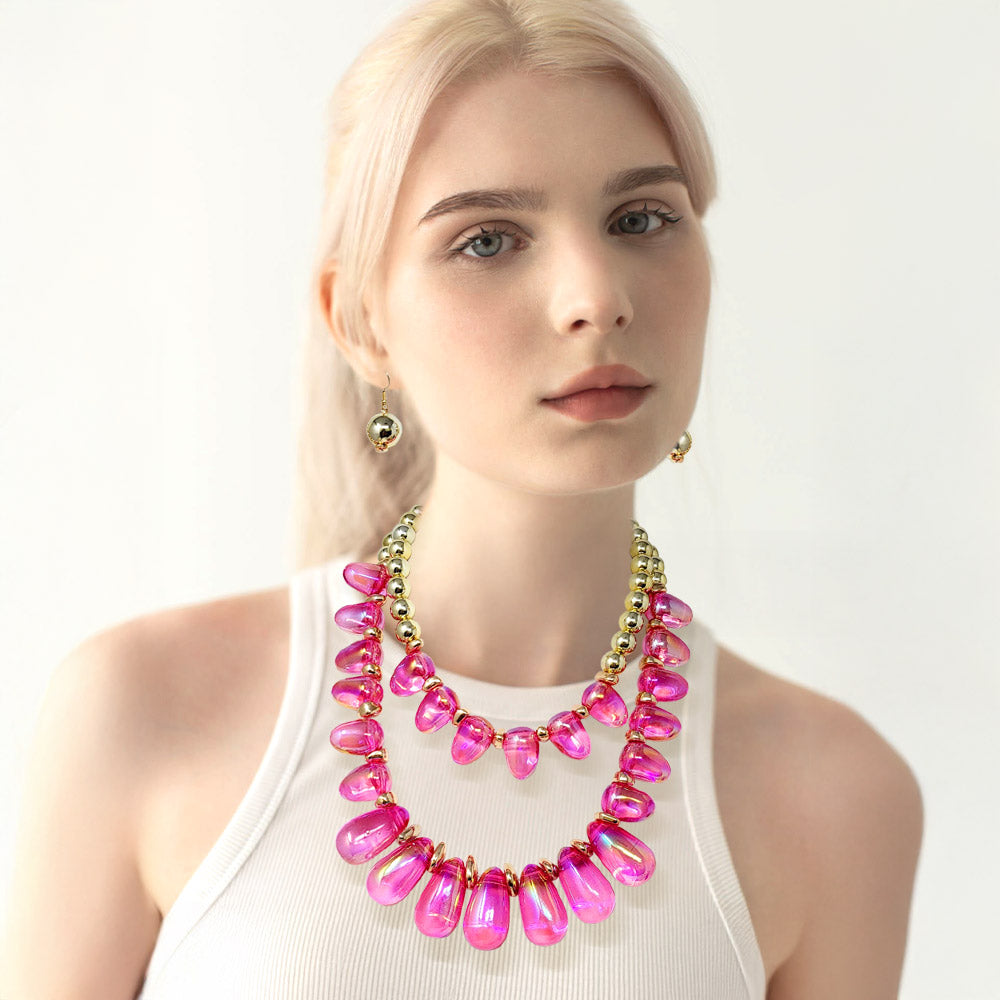 iLLASPARKZ Chunky Beaded Double Layered Statement Necklace