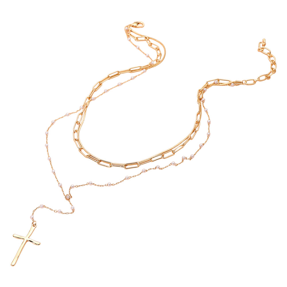 iLLASPARKZ Cross Pendant Pointed Pearl Paperclip Chain Layered Necklace