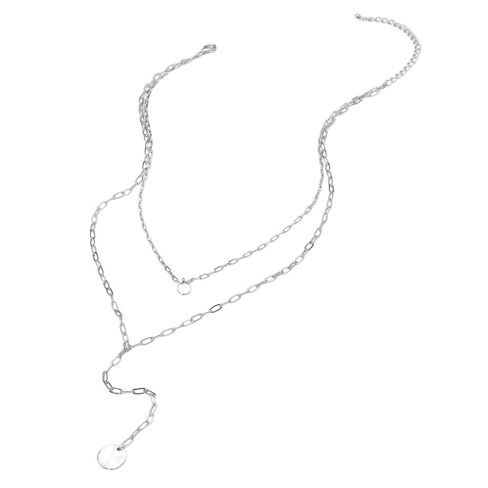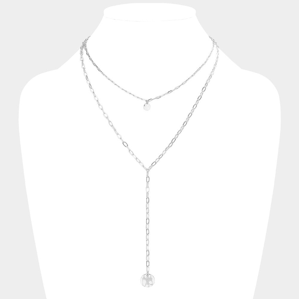 iLLASPARKZ Crushed Metal Disc Pendant Double Layered Y Necklace