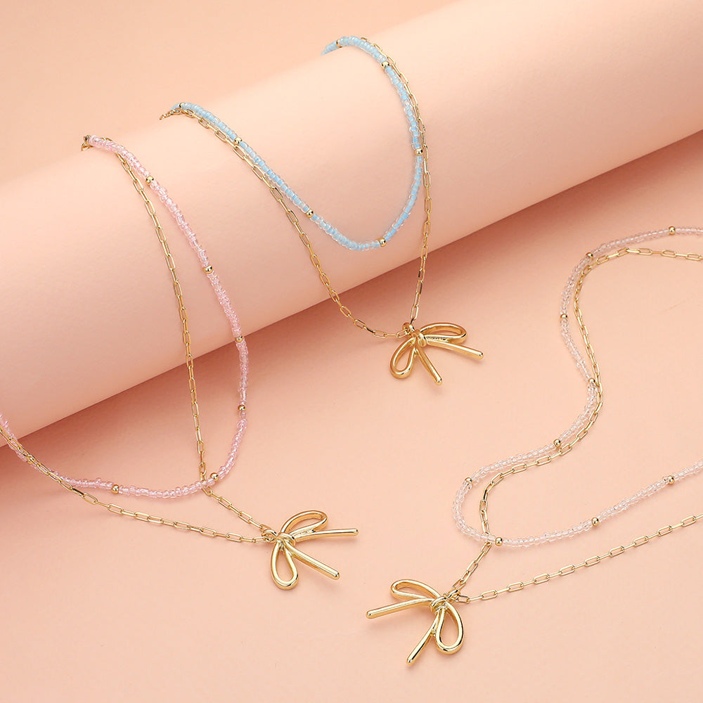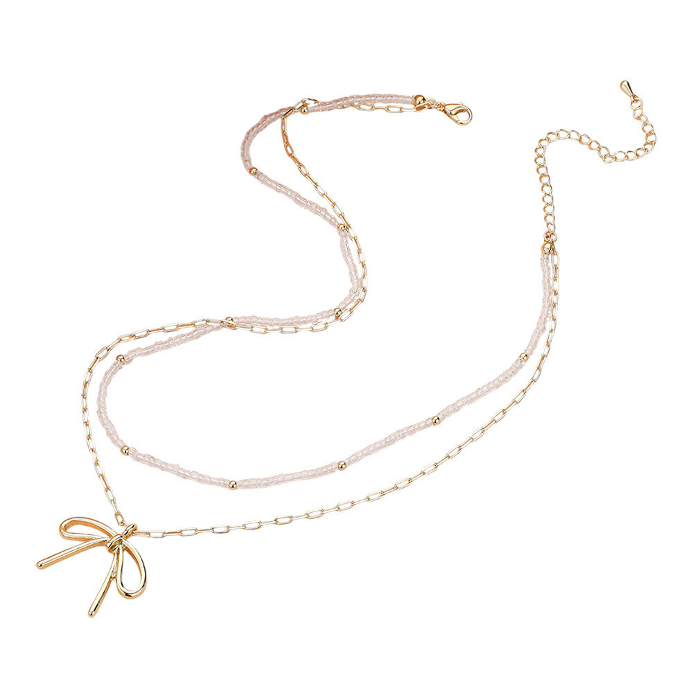 iLLASPARKZ Metal Bow Pendant Seed Beaded Paperclip Chain Layered Necklace