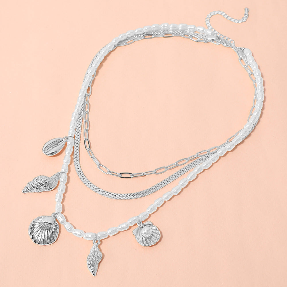 iLLASPARKZ Metal Sea Shell Puka Shell Charm Station Pearl Herringbone Paperclip Chain Layered Necklace