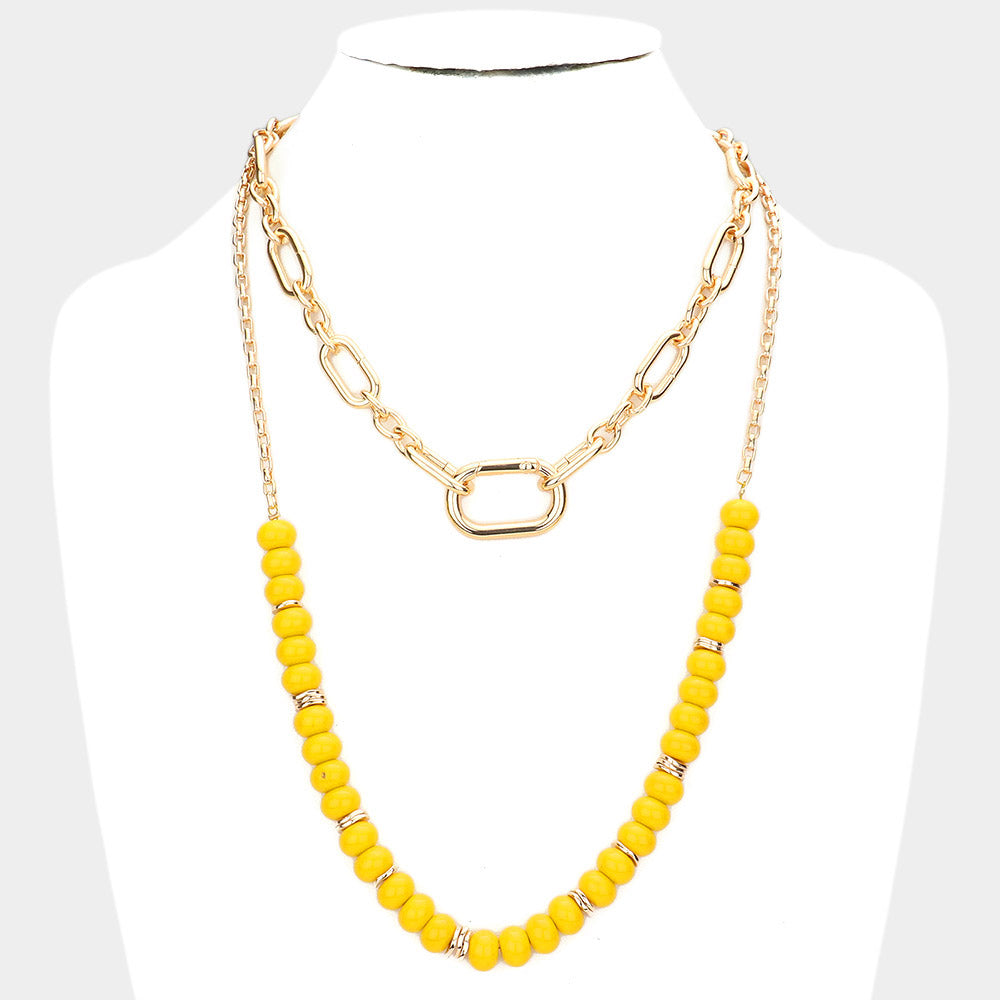 iLLASPARKZ Open Metal Oval Link Resin Beaded Double Layered Bib Necklace
