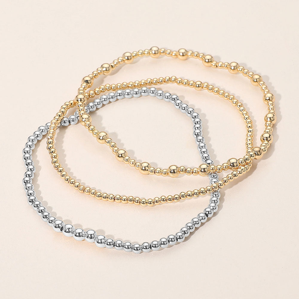 Stylish 3-piece bracelet set featuring layered beaded strands with a stretch design. A versatile addition to any outfit, perfect for casual or dressy wear.