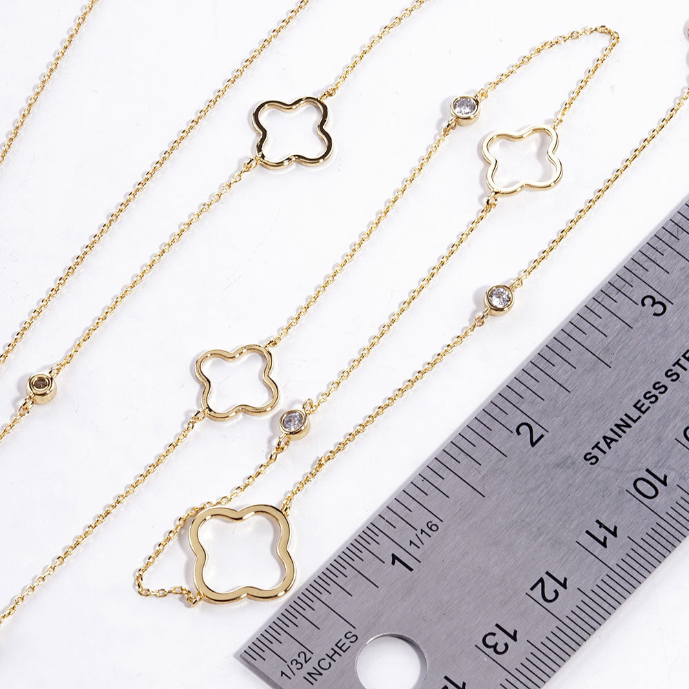 iLLASPARKZ Gold Dipped Quatrefoil Round Stone Station Long Necklace