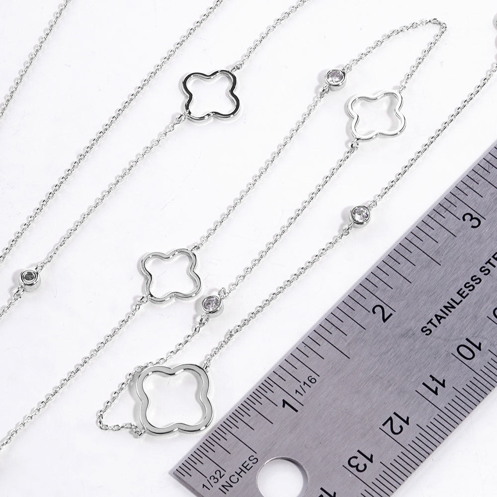 iLLASPARKZ White Gold Dipped Quatrefoil Round Stone Station Long Necklace