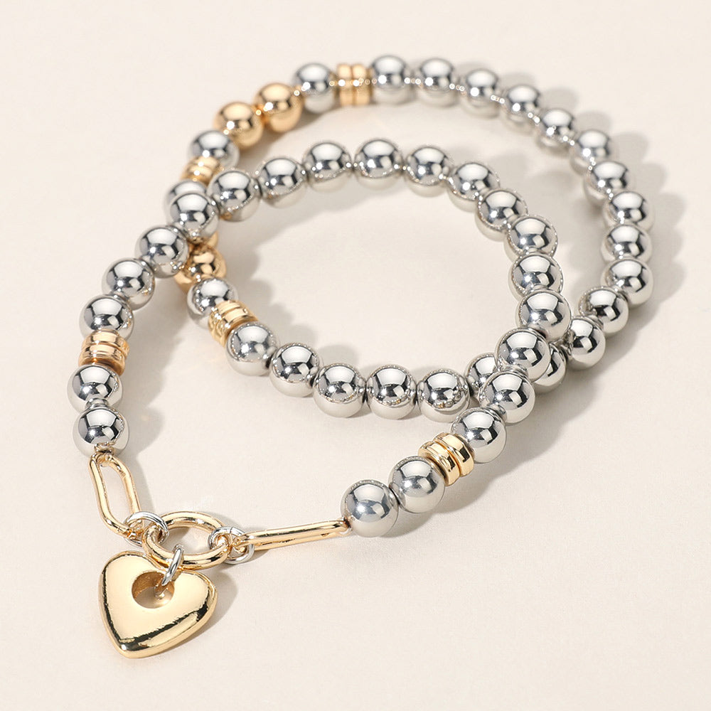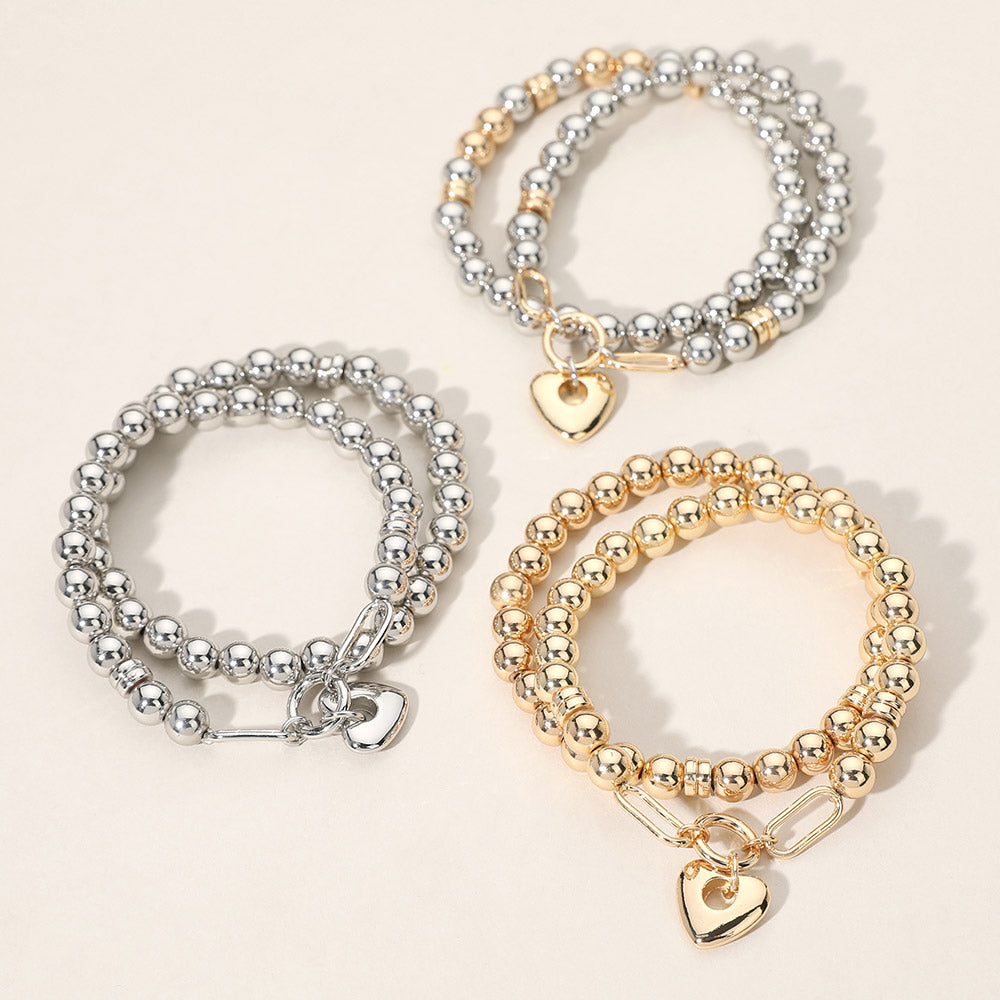 iLLASPARKZ 2PCS - Metal Heart Charm Pointed Ball Beaded Stretch Multi Layered Bracelets
