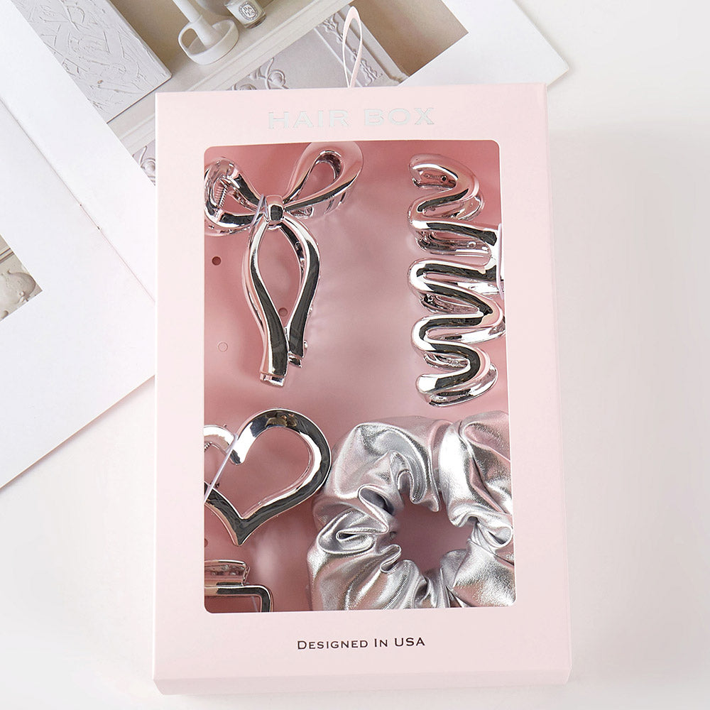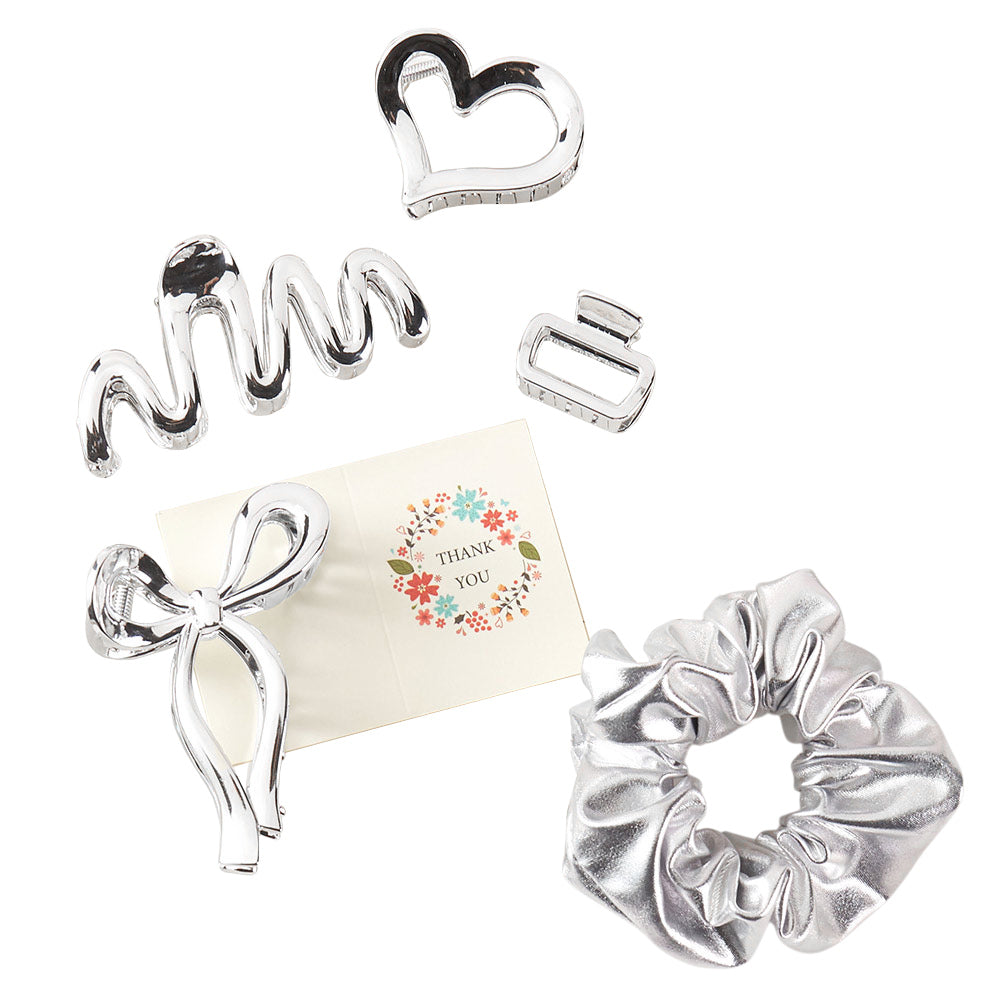 iLLASPARKZ 5PCS - Chrome Open Heart Bow Hair Claw Clips Stretchable Fabric Hairband Set