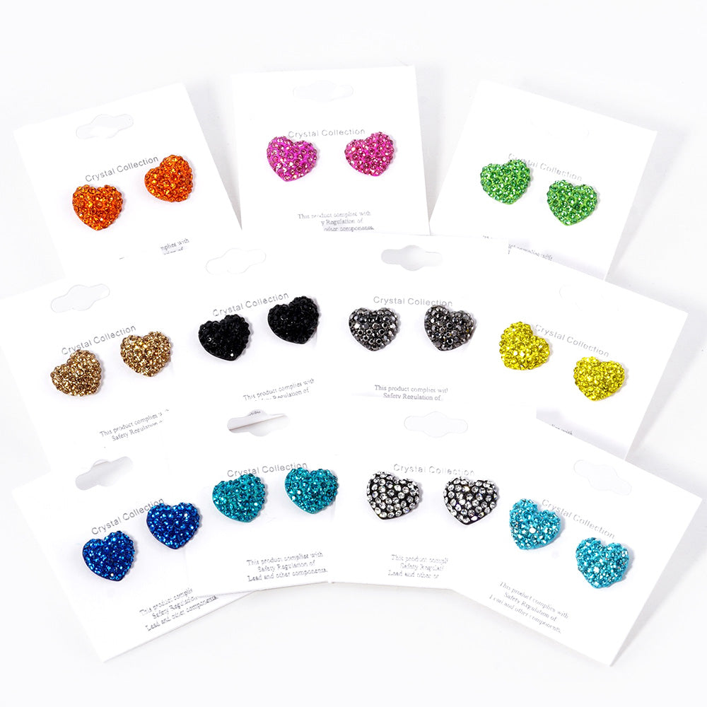Playful heart-shaped stud earrings adorned with sparkling crystal-like accents in a bold, vibrant finish. Perfect for making a fun statement, these lightweight earrings add a pop of personality and shine to any outfit—great for parties, casual wear, or gifting with flair.