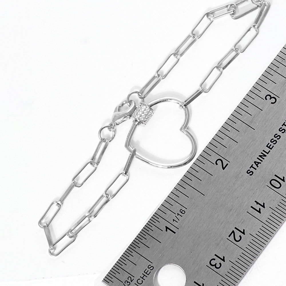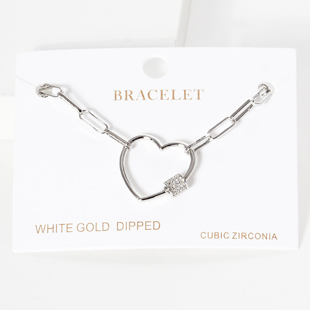 Chic paperclip chain bracelet with an open heart charm and crystal accent. A modern, romantic piece perfect for daily wear or special occasions.