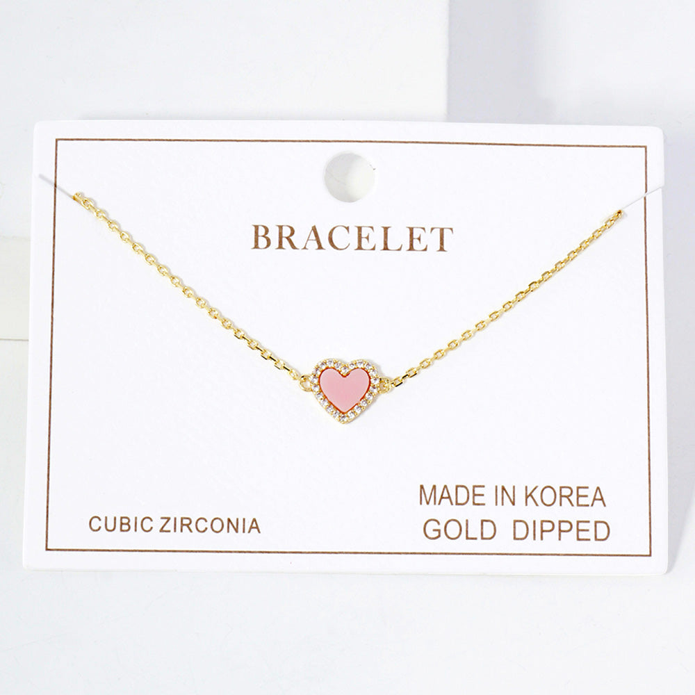 iLLASPARKZ Gold Dipped CZ Stone Paved Rim Heart Charm Pointed Bracelet