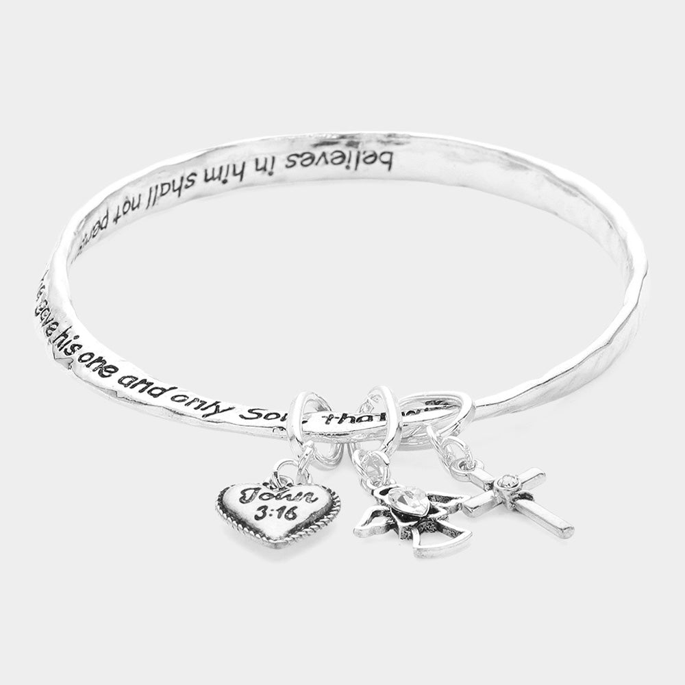iLLASPARKZ John 3:16 Message Heart Angel Cross Charm Bangle Bracelet