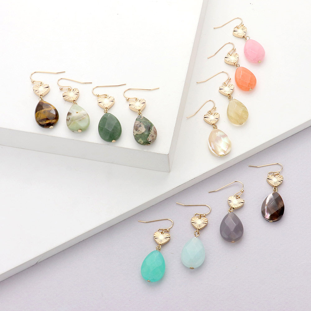 iLLASPARKZ Metal Heart Teardrop Natural Stone Link Dangle Earrings