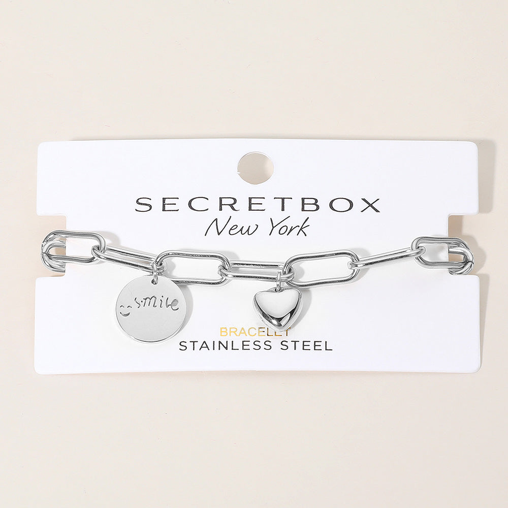 iLLASPARKZ SECRET BOX_Stainless Steel Smil Engraved Disc Heart Charm Paperclip Chain Bracelet