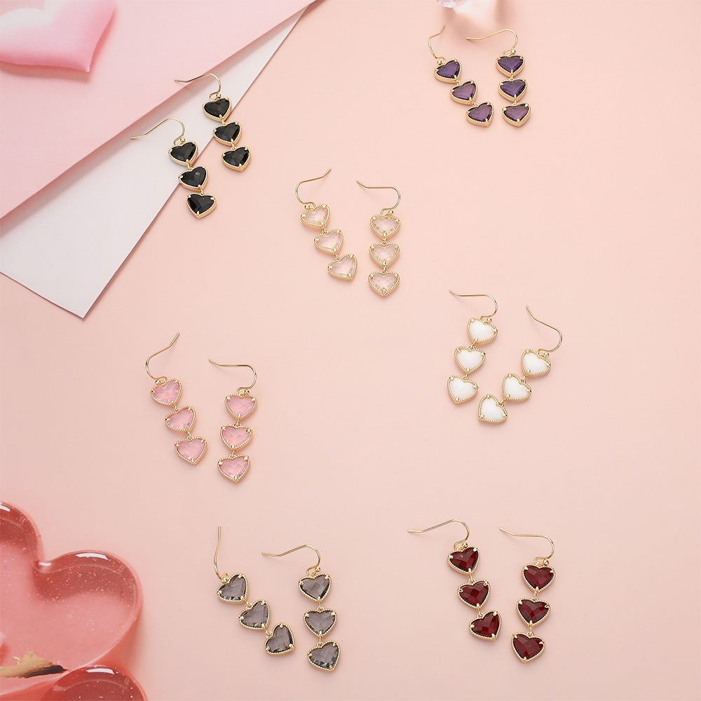 iLLASPARKZ Triple Heart Stone Cluster Link Dropdown Dangle Earrings
