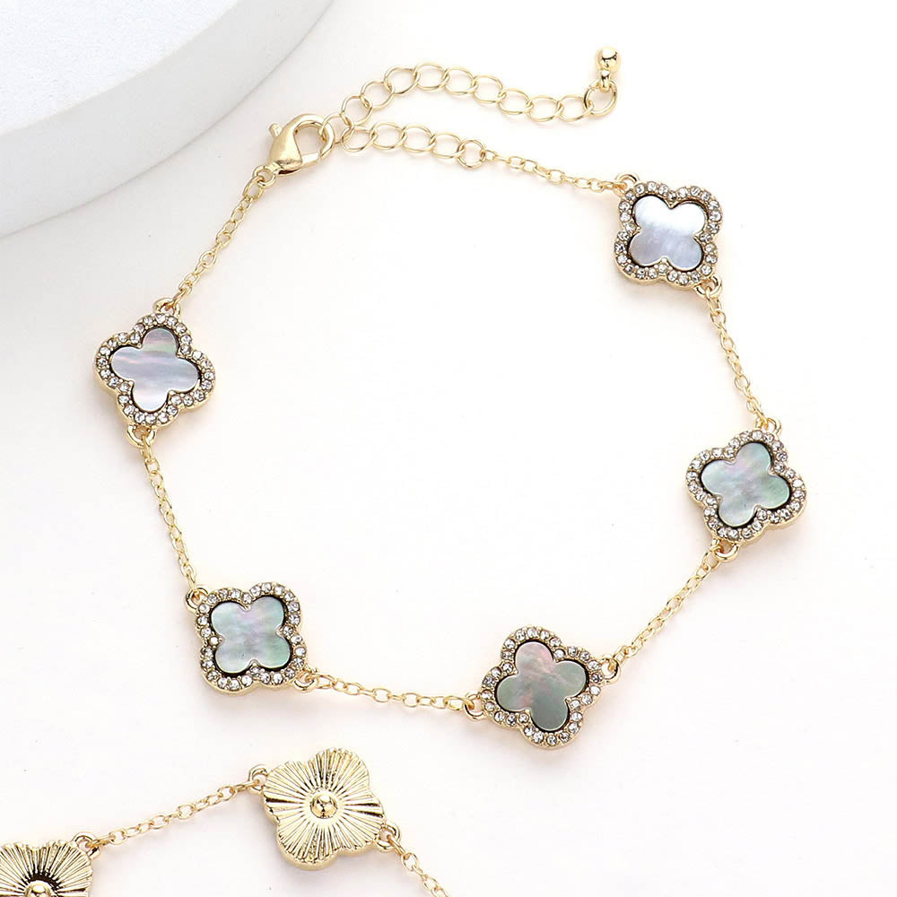 iLLASPARKZ Brass Metal Mother Of Pearl Quatrefoil Station Bracelet
