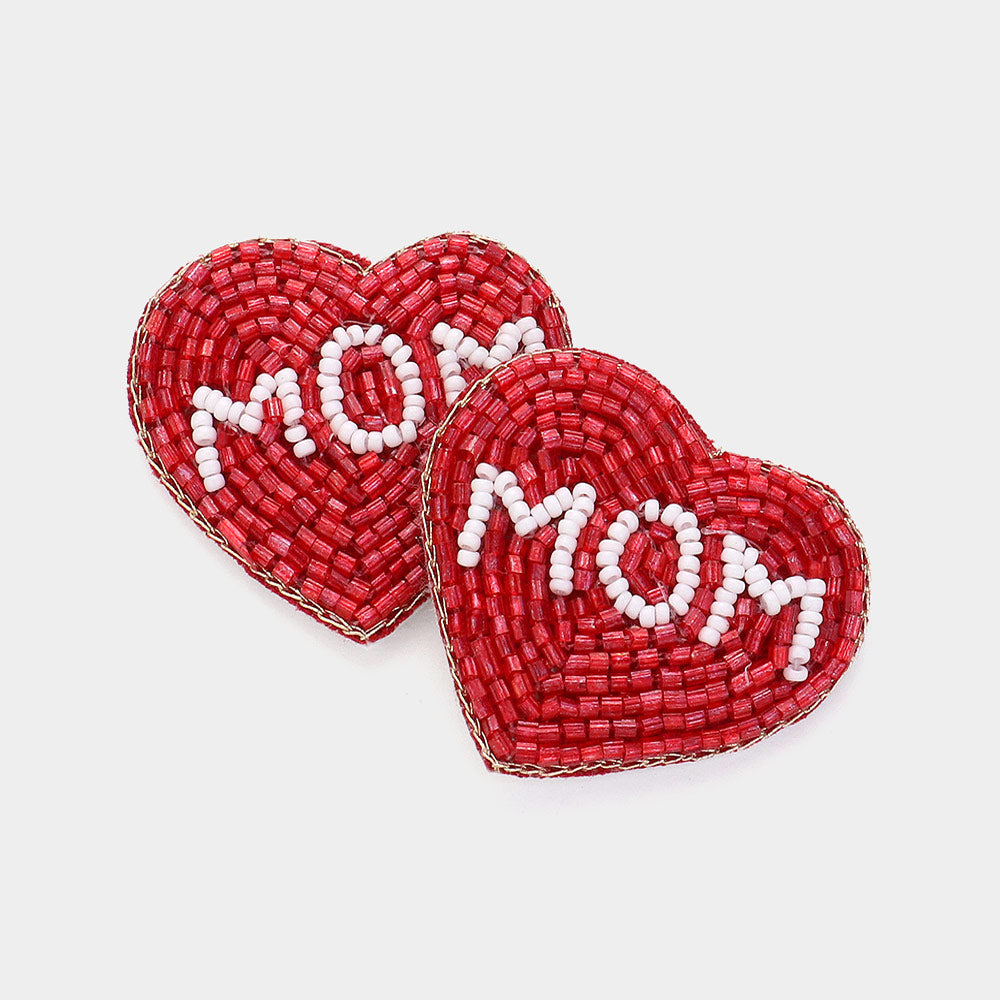 iLLASPARKZ Felt Back MOM Message Heart Beaded Earrings