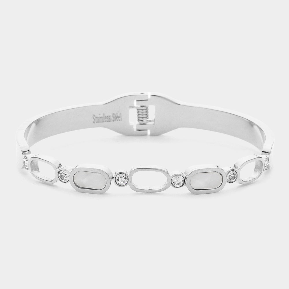 iLLASPARKZ Mother Of Pearl Pointed Stainless Steel Hinged Bangle Bracelet