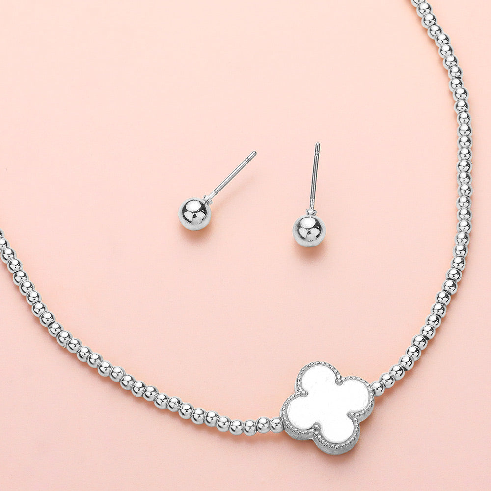 iLLASPARKZ Mother Of Pearl Quatrefoil Pendant Pointed Metal Ball Beaded Necklace