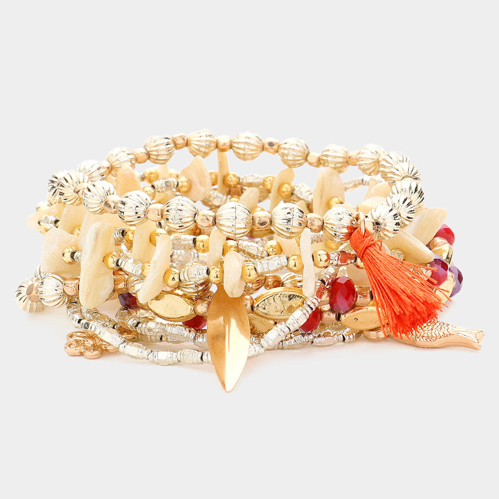 iLLASPARKZ 10PCS - Swirl Metal Disc Tassel Charm Mother Of Pearl Beaded Fish Flower Charms Stretch Multi Layered Bracelets
