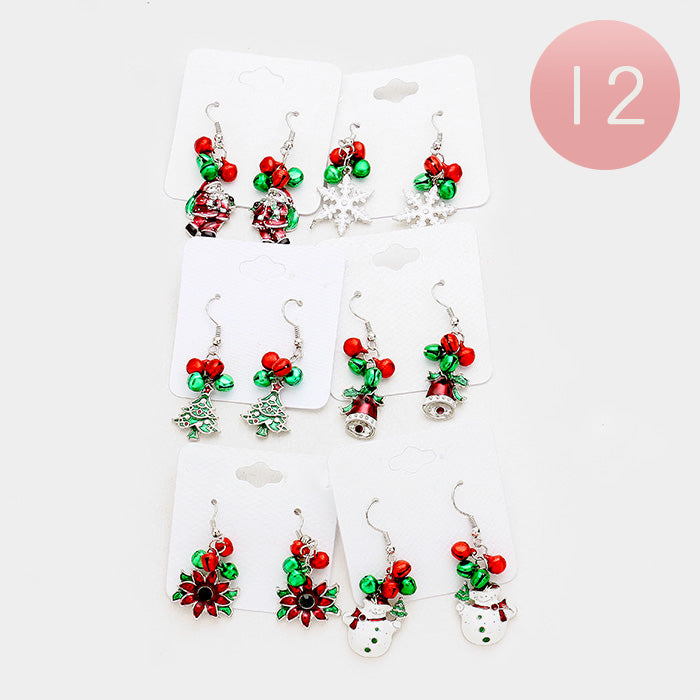 iLLASPARKZ 12 Pairs - Rhinestone Enamel Christmas Dangle Earrings