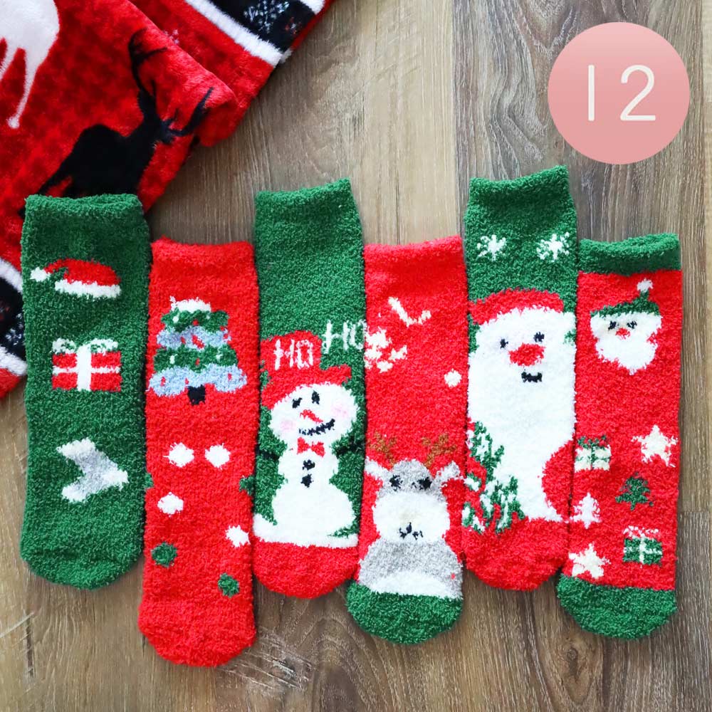 Step into holiday cheer with this 12-pack of festive fuzzy socks featuring playful seasonal characters and patterns. Perfect for cozy lounging, gifting, or adding fun to winter outfits, each pair delivers warmth, softness, and a burst of joyful holiday spirit.
